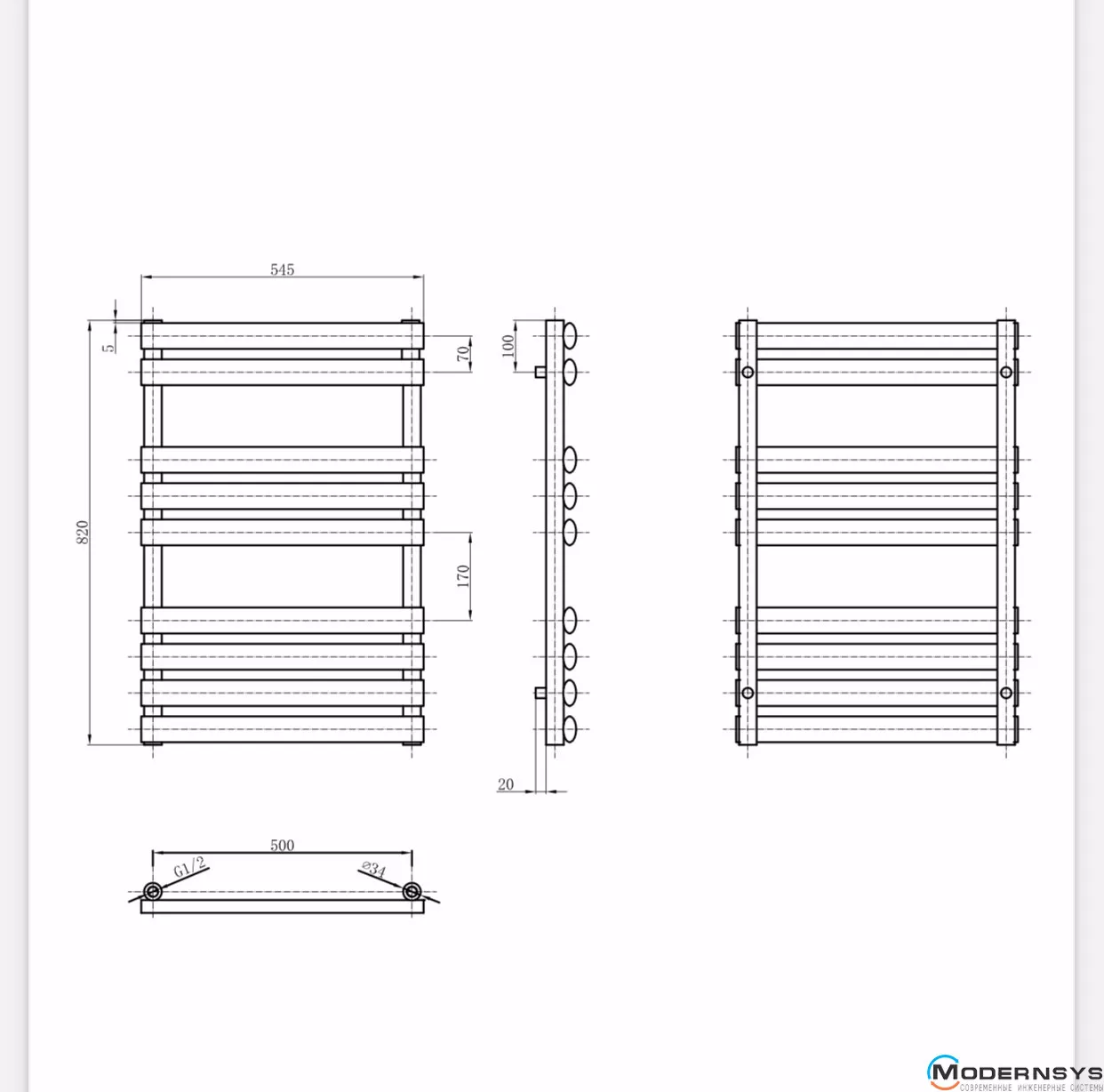 Технічні характеристики: Дизайнерський сушка для рушників ARTTIDESIGN (Арттидизайн) Miramar 9/820 чорний матовий