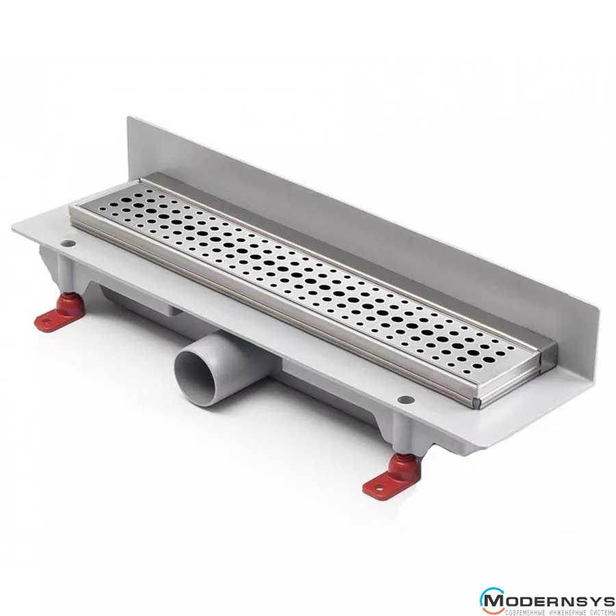 Висока пропускна здатність душових каналів МСН дозволяє застосовувати їх з будь-якими типами душових воронок. Унікальна конструкція каналів МСН забезпечує швидке та зручне встановлення, а висоту ніжок легко регулювати зверху навіть після монтажу каналу. Фланець по периметру та гідроізоляційна стрічка дозволяють зробити шар надійного захисту від попадання вологи на стяжку.