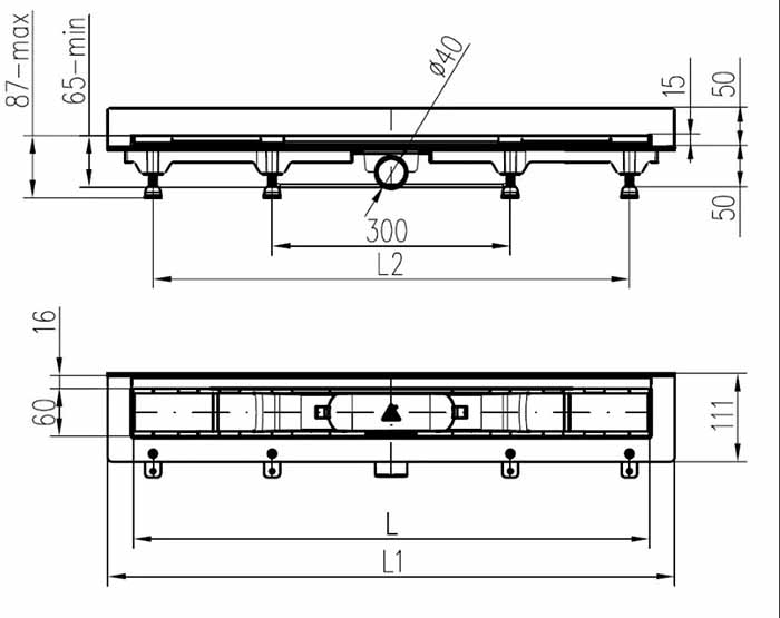 Технічні характеристики: Душовий канал MCH (МЦШ) CH 650 K з ґратами "Класик/Під плитку"