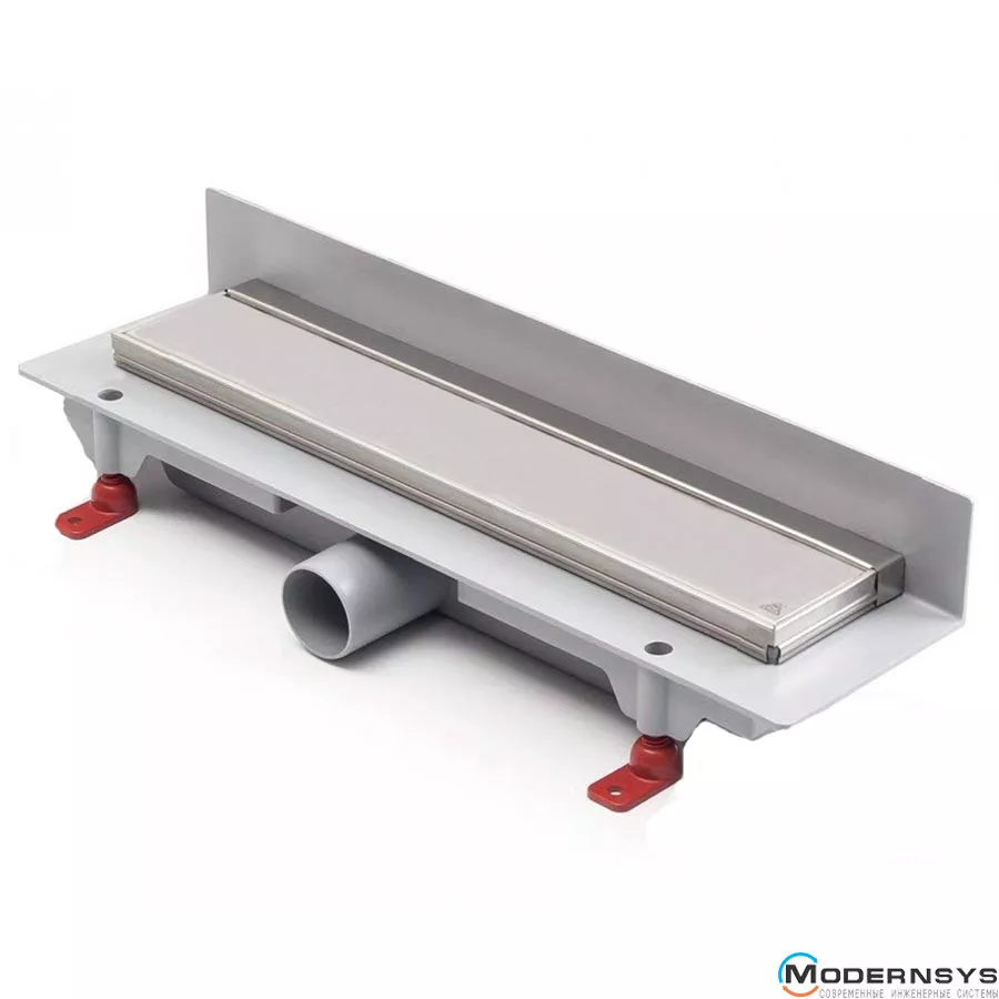 Канал виготовлений із поліпропілену, має ребра жорсткості. Кромка каналу має нержавіючу рамку для міцності та екоративного ефекту. Вертикальний фланець дозволяє швидко та естетично змонтувати канал біля стіни, також створює додаткову та надійну гідроізоляцію кута. Сифон комбінований – має клапани, які закриваються, коли вода у сифоні висихає.