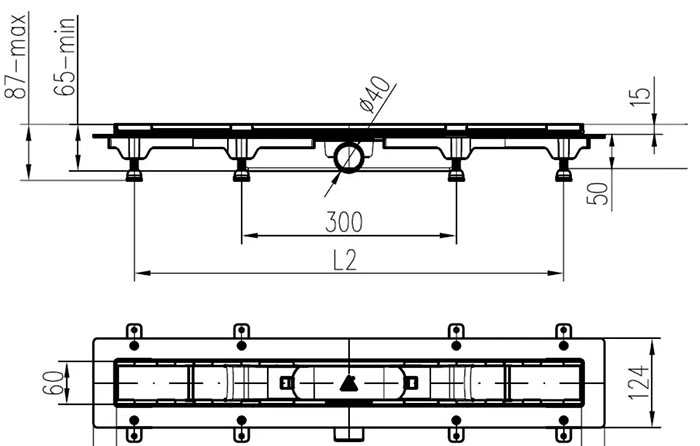 Технічні характеристики: Душовий канал MCH (МЦШ) CH 750 MN 1 з ґратами "Медіум"