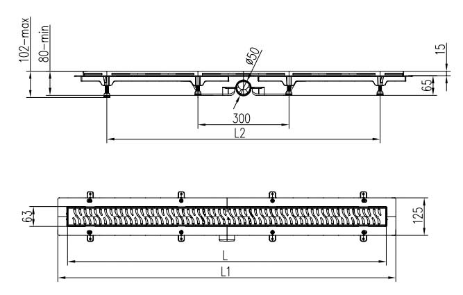 Технічні характеристики: Душовий канал MCH (МЦШ) CH 750/50 KN 1 з ґратами "Класик/Під плитку"