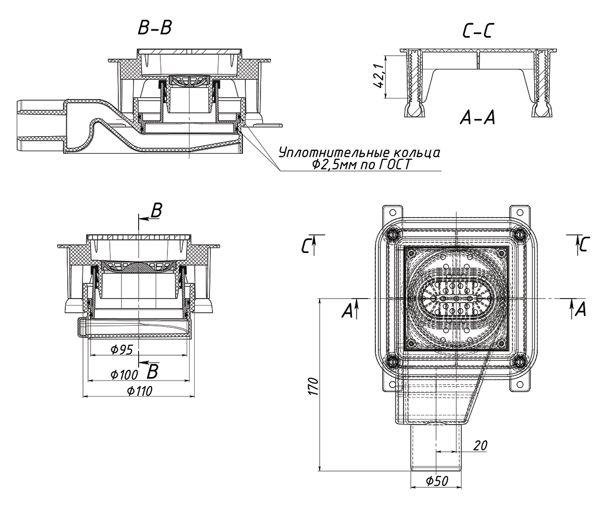 - низький S-подібний сифон з гідрозатвором для запобігання проникненню запахів із каналізації