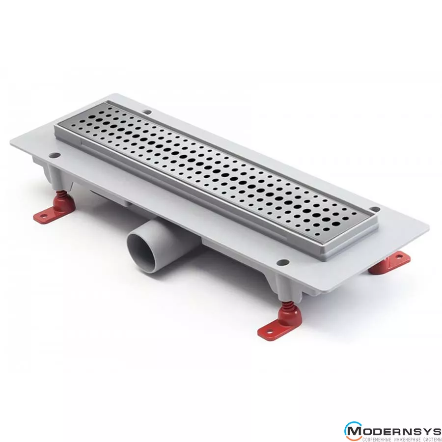 Висока пропускна здатність душових каналів МСН дозволяє застосовувати їх з будь-якими типами душових лійок. Унікальна конструкція каналів МСН забезпечує швидкий та зручний монтаж, а висоту ніжок можна легко коригувати зверху навіть після встановлення каналу. Фланець по периметру та гідроізоляційна стрічка дозволяють зробити шар надійного захисту від попадання вологи до стяжки.