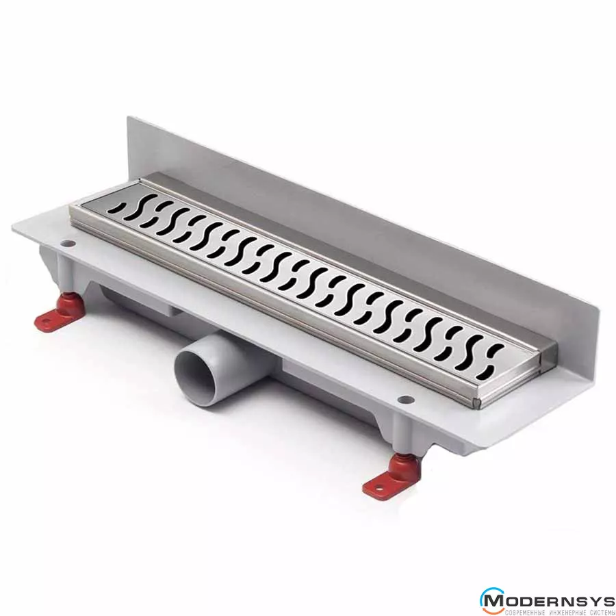 Канал виготовлений із поліпропілену, має ребра жорсткості. Кромка каналу має нержавіючу рамку для міцності та екоративного ефекту. Вертикальний фланець дозволяє швидко та естетично змонтувати канал біля стіни, також створює додаткову та надійну гідроізоляцію кута. Сифон комбінований – має клапани, які закриваються, коли вода у сифоні висихає.