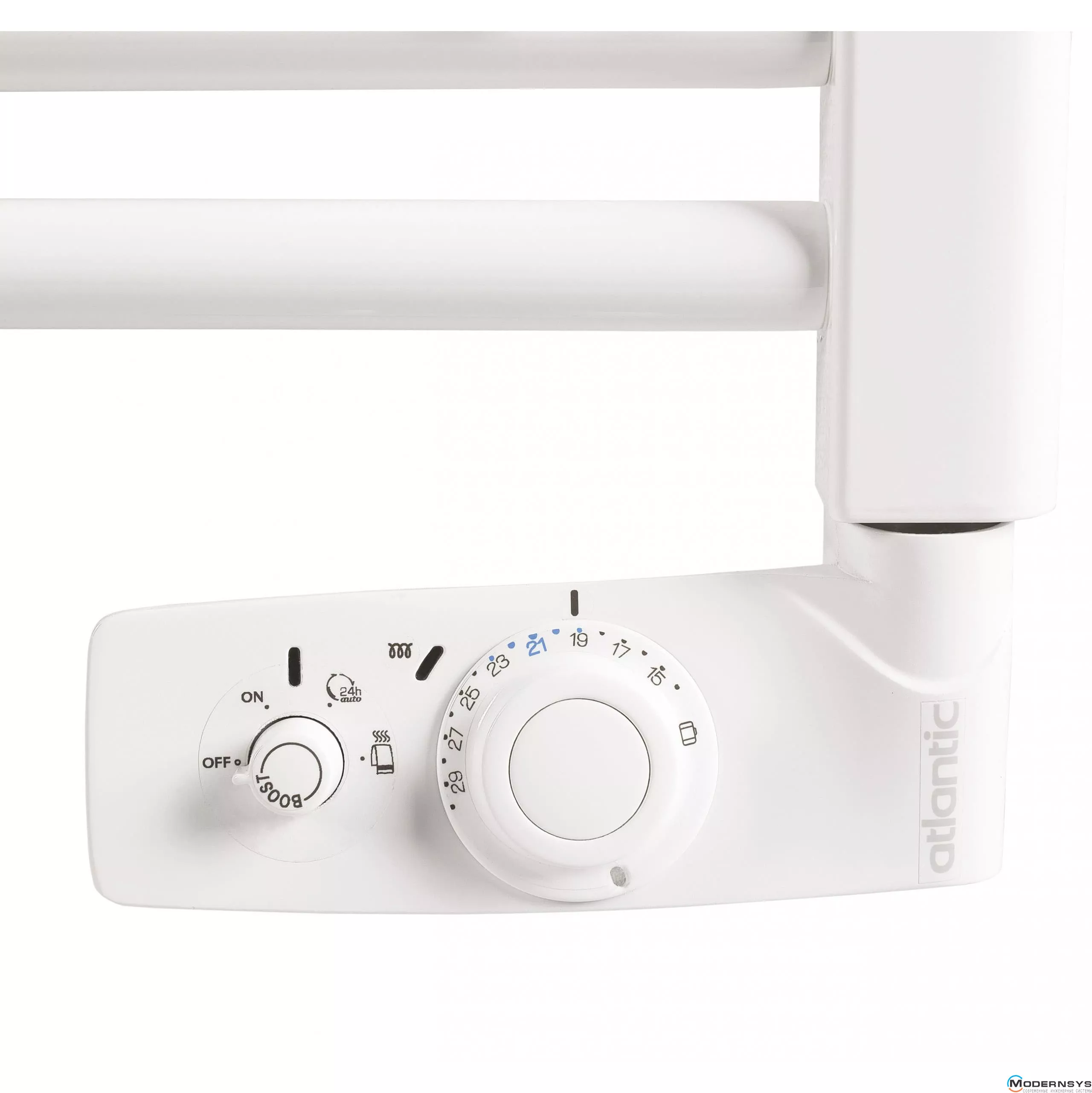 Сушка для рушників Atlantic 2012 Narrow White 500W оснащена блоком управління, який дозволяє налаштувати комфортну температуру нагріву повітря в приміщенні і встановити індивідуальний режим роботи сушки для рушників. У цьому приладі передбачено п'ять режимів роботи: