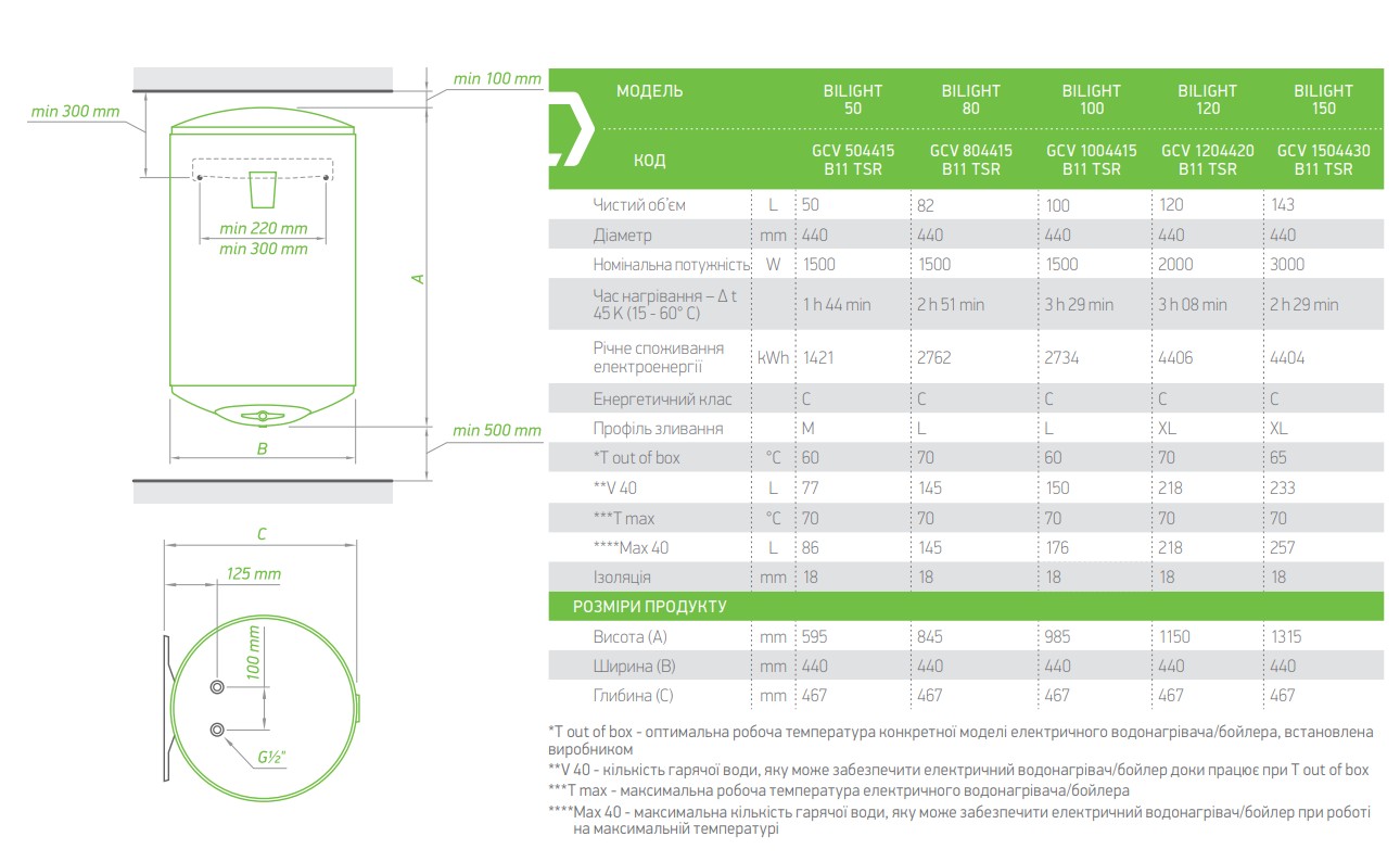 Водонагрівачі серії BiLight розроблені відповідно до найвищих європейських стандартів безпеки та вимог якості. Асортименти продукції мають моделі з об'ємом від 50 до 150 літрів.