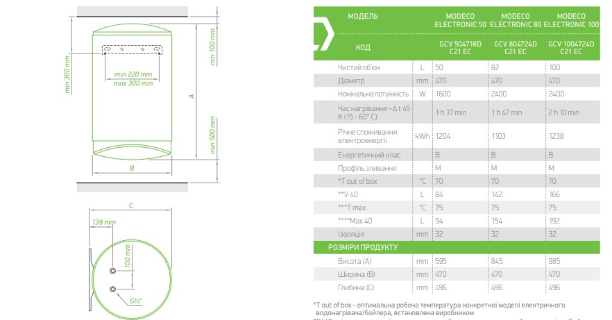 Водонагрівачі & nbsp; TESY серії ModEco Electronic - це бойлери класу енергоспоживання В, найвищого в даній категорії. Керамічний нагрівальний елемент вміщує жорстку воду і не створює шумового ефекту при нагріванні води. Інтелектуальна система економії електроенергії Eco Smart дозволить вам знизити витрату електроенергії без втрати комфорту використання водонагрівача. Серія Tey ModEco Electronic включає в себе лінійку бойлерів об'ємом 50-100 літрів.