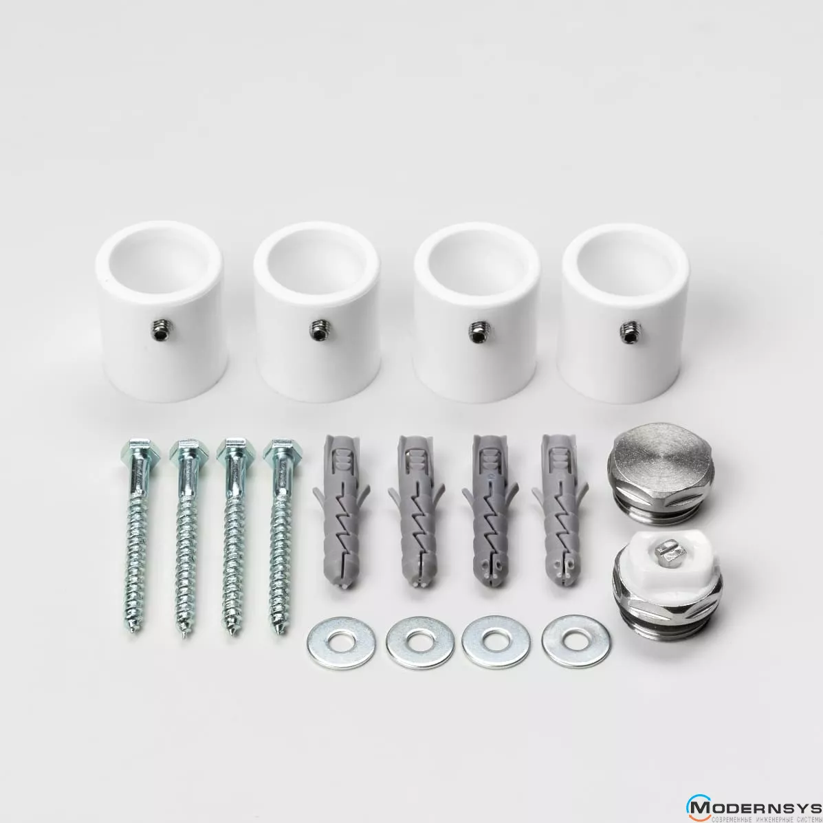 Завдяки повній комплектації, після покупки вам не доведеться їхати в магазин, адже разом з опалювальним приладом вже йдуть потрібні для легкого монтажу кріплення, а також заглушки, відвідник повітря і дюбелі з болтами. А якісна упаковка з міцного гофрокартону та повітряно-бульбашкової плівки унеможливлює пошкодження під час транспортування.