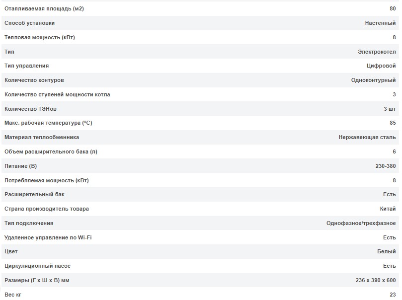 Технічні характеристики: Електрокотел Midea (Мидея) 8KW