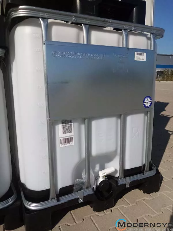 Новий Єврокуб німецького виробника виготовлений з харчового поліетилену, пройшов випробування та схвалений для заповнення небезпечних рідин відповідно до UN 31 HA1/Y/D/BAM. Позначення ООН надруковано на внутрішній ємності та на табличці. Контейнер можна використовувати для транспортування та зберігання небезпечних рідин, харчових продуктів харчування, максимальна допустима густина речовин 1,9 кг/л.