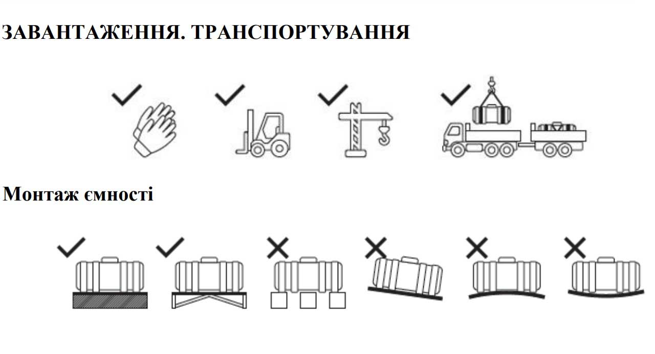 Місткість не призначена для роботи під тиском, у зв'язку з цим кришка закривається не герметично. Забороняється зберігати легкозаймисті рідини. Якщо рідина може замерзнути, рекомендується її злити. Монтувати необхідно на рівну тверду горизонтальну основу, габарити якої не повинні бути меншими за габарити ємності. Також необхідно виключити зовнішній фізичний вплив. При виборі ємності необхідно враховувати ширину дверного отвору.