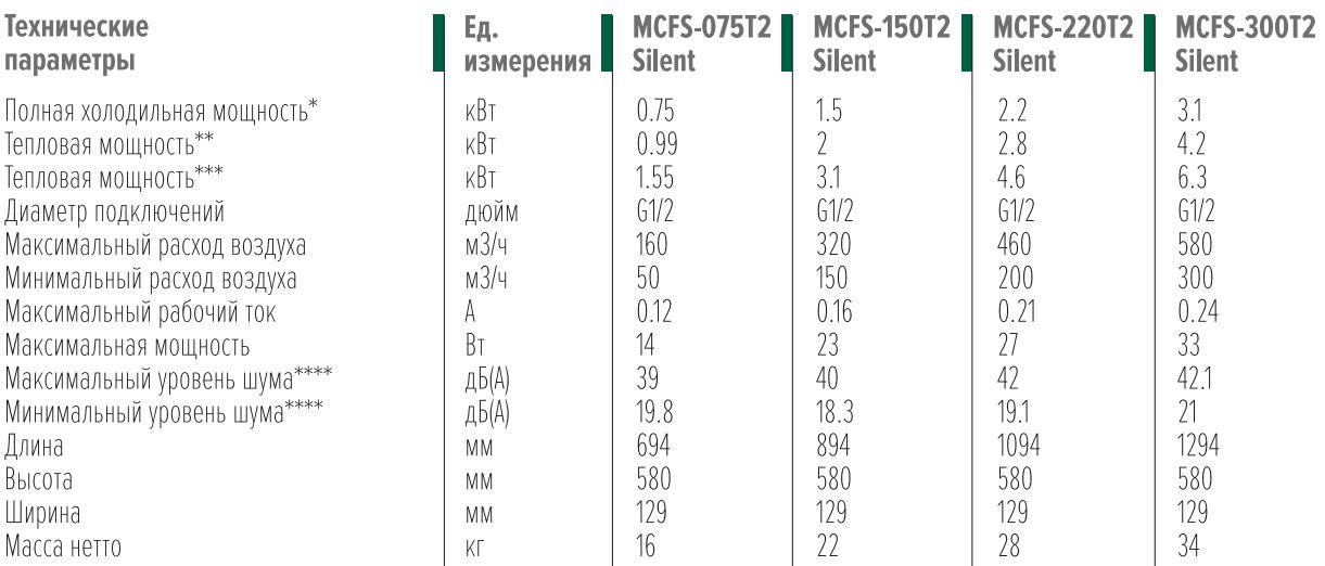 Технічні характеристики для серії фанкойлів MYCOND SILENT