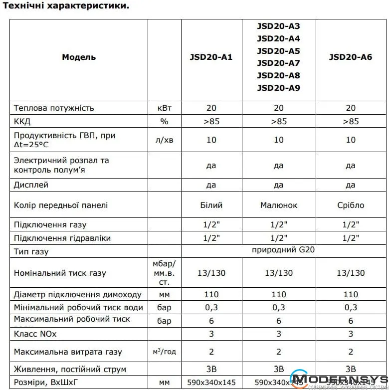 Технічні характеристики: Газовая дымоходная колонка Termaxit JSD 20-A1