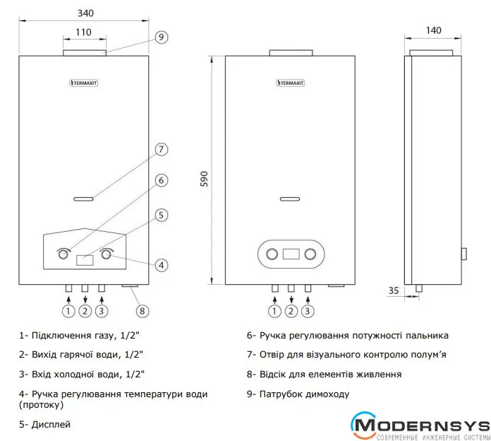 Технічні характеристики: Газовая дымоходная колонка Termaxit JSD 20-A6
