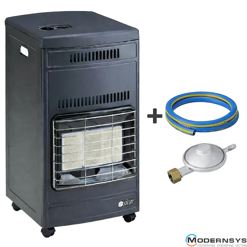 Опис: Газовий інфрачервоний обігрівач Sicar euro 90 4,2 кВт п'єзопідпал, 3 режими, датчик co₂, редуктор + шланг
