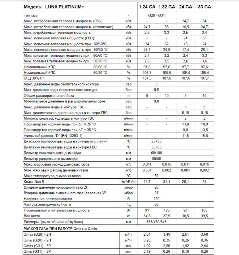Технічні характеристики: Газовий котел Baxi (Бакси) LUNA PLATINUM 1.32+GA