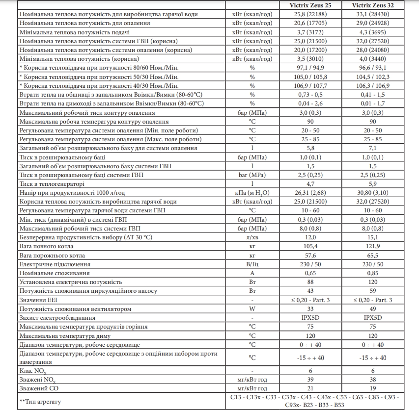 - Котел Victrix Zeus 25 може обігріти будинок площею від 35 до 250 м2; (налаштовується на потрібну площу опалення)