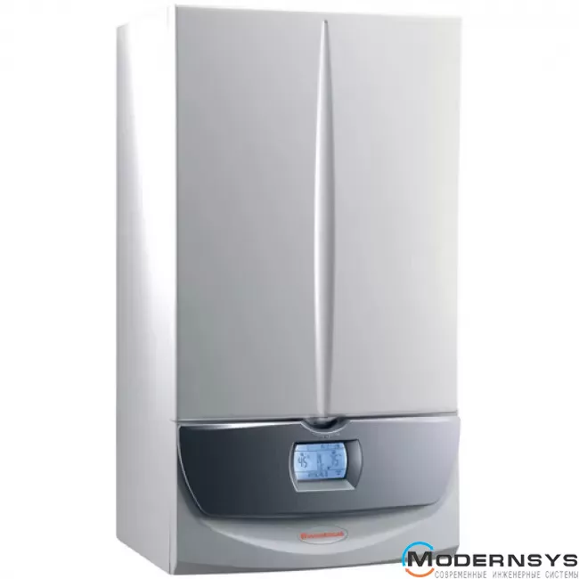- Економічний модуляційний пальник. Підтримка заданої комфортної температури теплоносія в опалювальній системі або води в контурі ГВП шляхом зміни кількості газу, що подається на пальник.