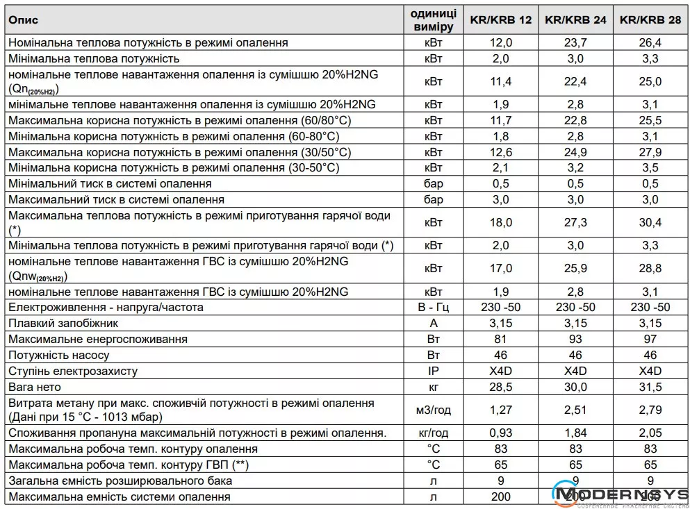 Технічні характеристики: Газовий котел із частотним насосом та триходовим клапаном 1-контурний FONDITAL (Фондитал) KALU22KU24 / KAOU22KU24 ANTEA CONDENSING KRB 24