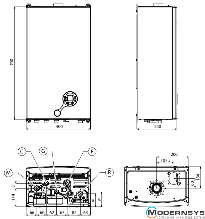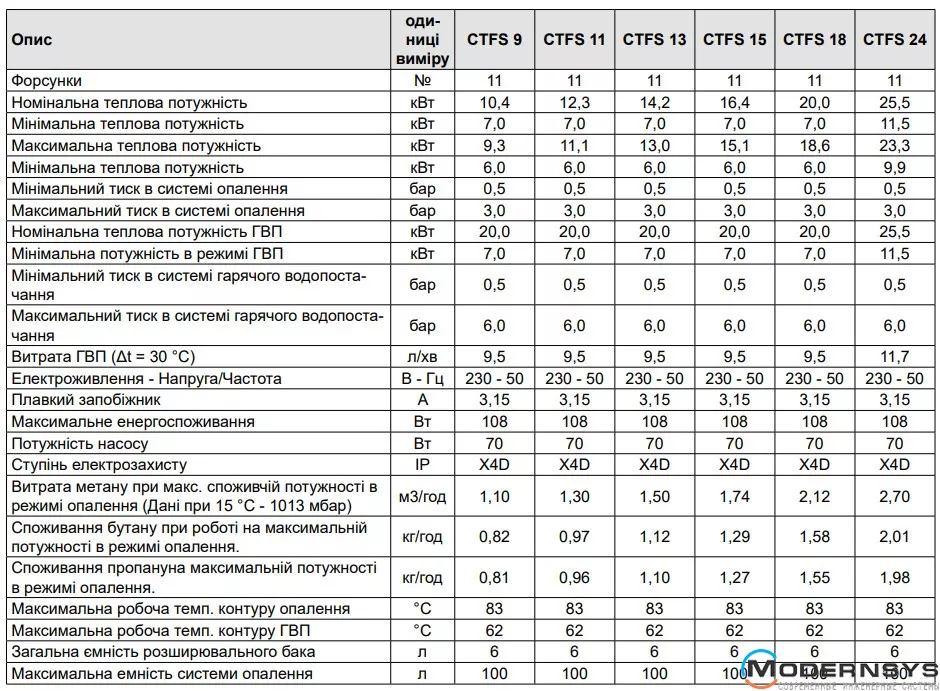 Технічні характеристики: Газовий котел (турбо) 2-контурний (2 теплообмінники) FONDITAL (Фондитал) CMKU22CA24 MINORCA CTFS 24