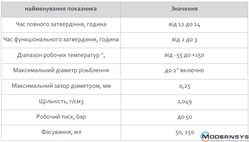 Технічні характеристики: Герметик для газу FADO (Фадо) (анаеробний)