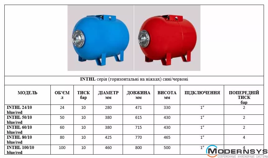 Технічні характеристики: Гидроаккумулятор горизонтальный на ножках INNOVATECH INTHL 60/10