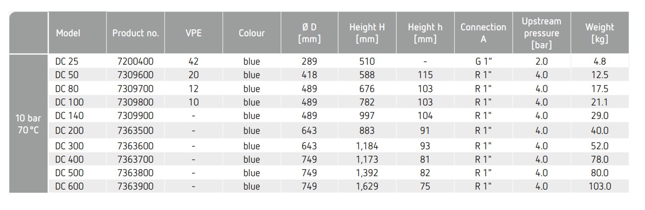 Гідроакумулятори, що поєднуються в серію DC Refix (junior), виготовляються з високоякісних матеріалів. Бак розділяється фіксованою мембраною, що характеризується нечутливістю до бактеріальних впливів та задоволенням усіх норм гігієни та санітарії, які пред'являються до питної води.