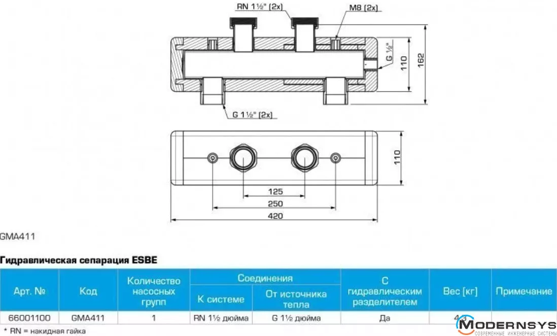 Технічні характеристики: Гідрострілка ESBE (Эсби) GMA411 для насосних груп