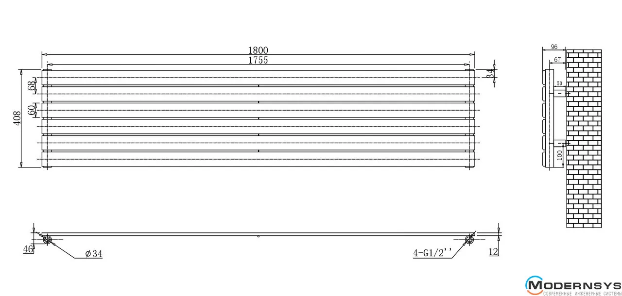 Технічні характеристики: Горизонтальний дизайн радіатор ARTTIDESIGN (Арттидизайн) Livorno G 6/408/1800 білий матовий