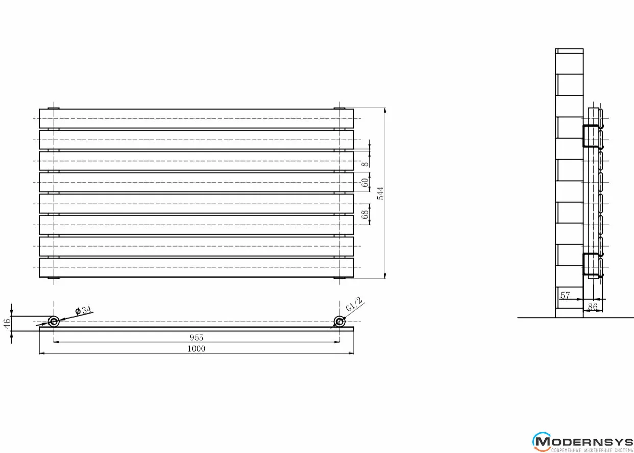 Технічні характеристики: Горизонтальний дизайн радіатор ARTTIDESIGN (Арттидизайн) Livorno G 8/544/1000 білий матовий