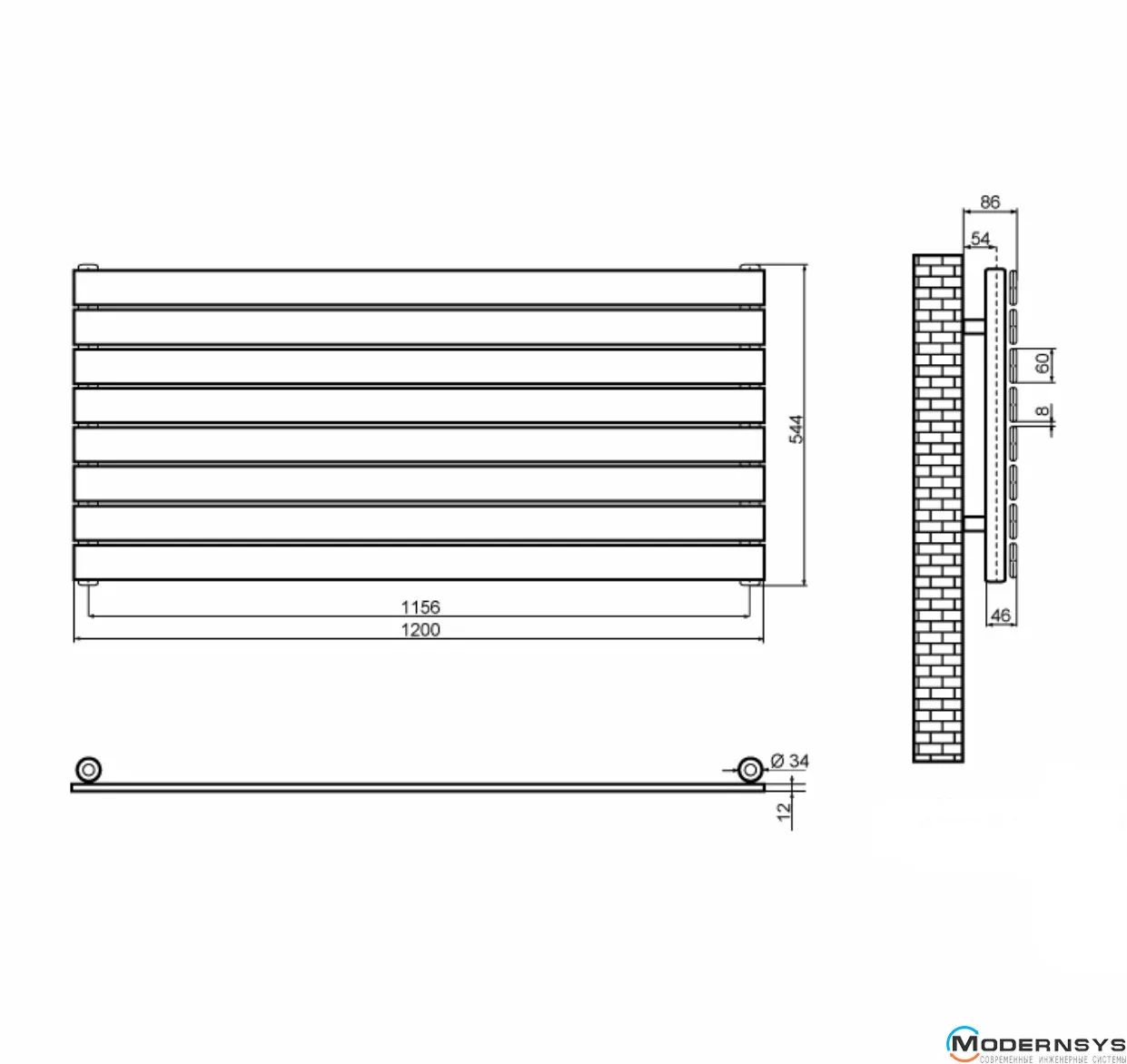 Технічні характеристики: Горизонтальний дизайн радіатор ARTTIDESIGN (Арттидизайн) Livorno G 8/544/1200 сірий матовий