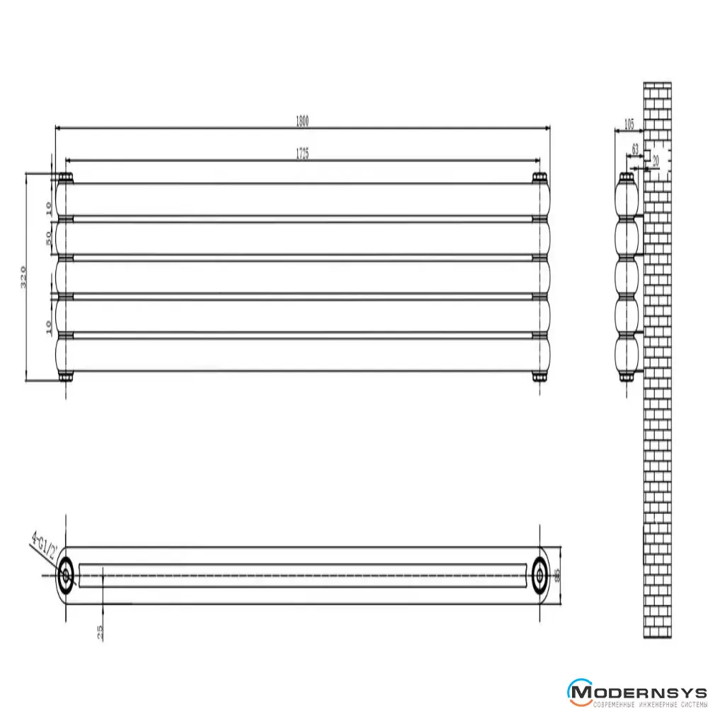 Технічні характеристики: Горизонтальний радіатор опалення ARTTIDESIGN (Арттидизайн) Sora 5/320/1800 чорний матовий