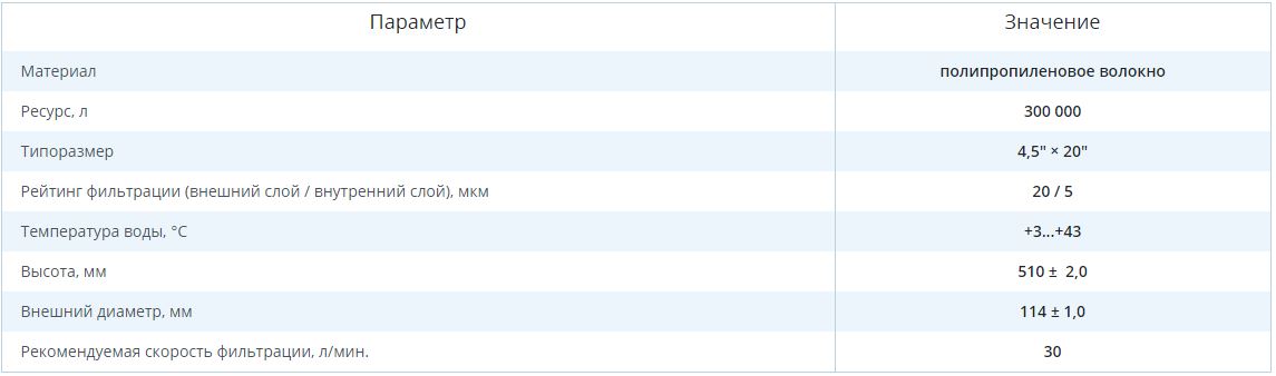 Технічні характеристики: Градієнтний картридж для механічного очищення води Ecosoft (Экософт) BB20 (CPV4520205ECO)