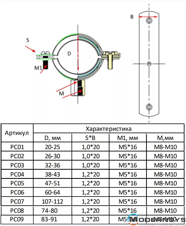Технічні характеристики: Хомут для труб FADO (Фадо) 2" 60-64 мм
