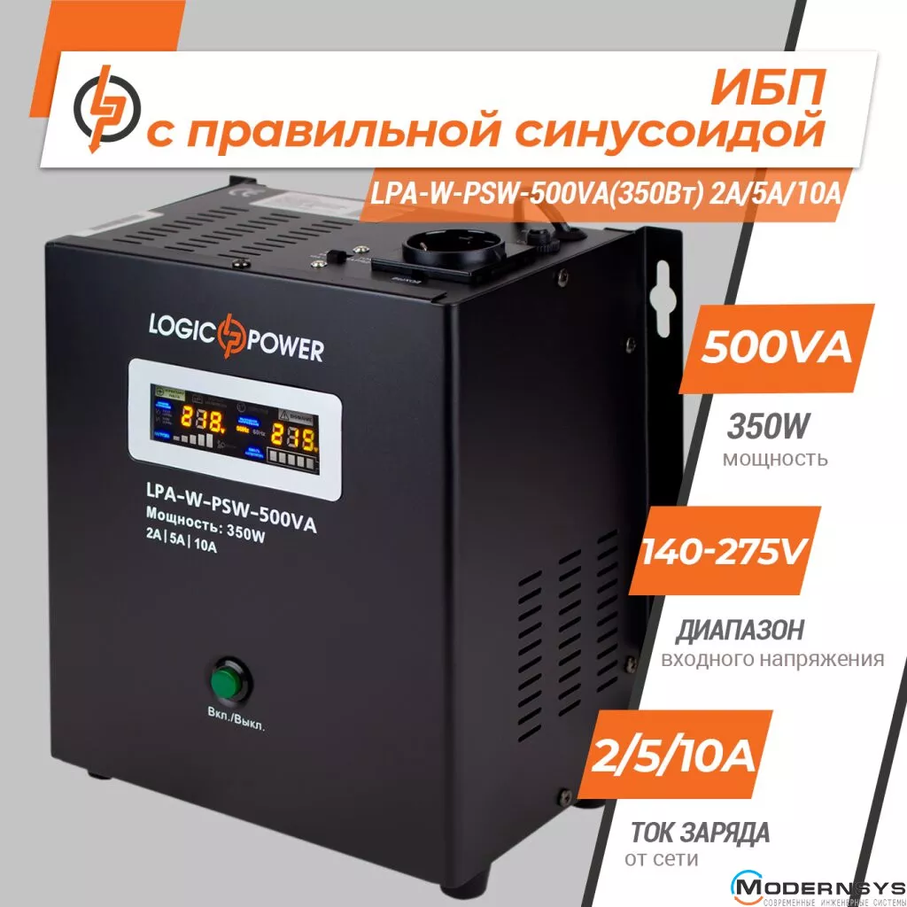 Опис: ДБЖ LogicPower (Лоджик Повер) з правильною синусоїдою 12V LPA-W-PSW-500VA(350Вт) 2A/5A/10A