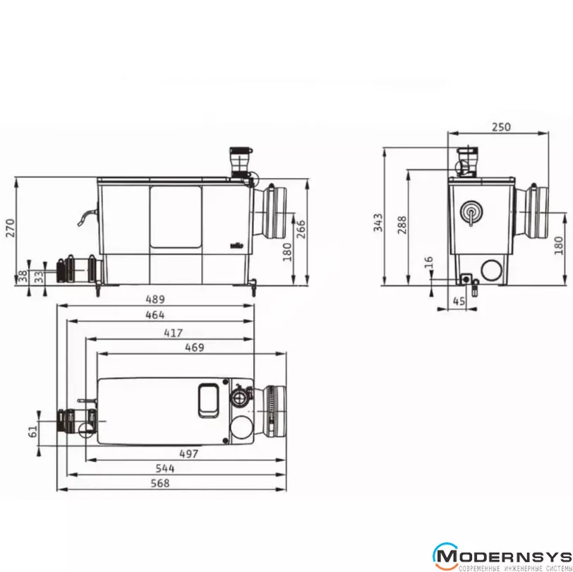 - Вмонтований неповоротний клапан для утримання від зворотного ходу стоків та можливого затоплення.