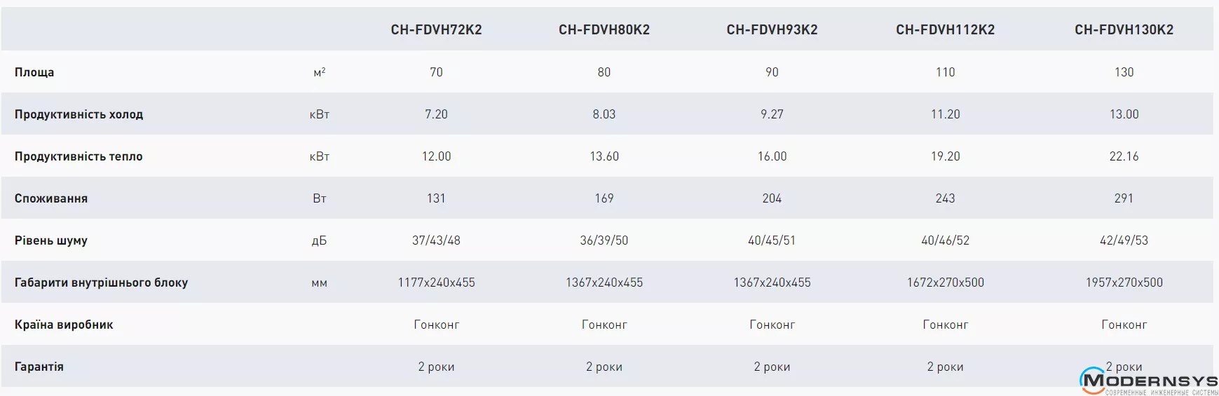 Технічні характеристики: Канальный фанкойл Cooper&Hunter (Купер Хантер) CH-FDVH112K2