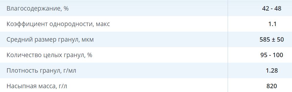 Технічні характеристики для катіоніту сильнокислотного Ecosoft DOWEX Marathon