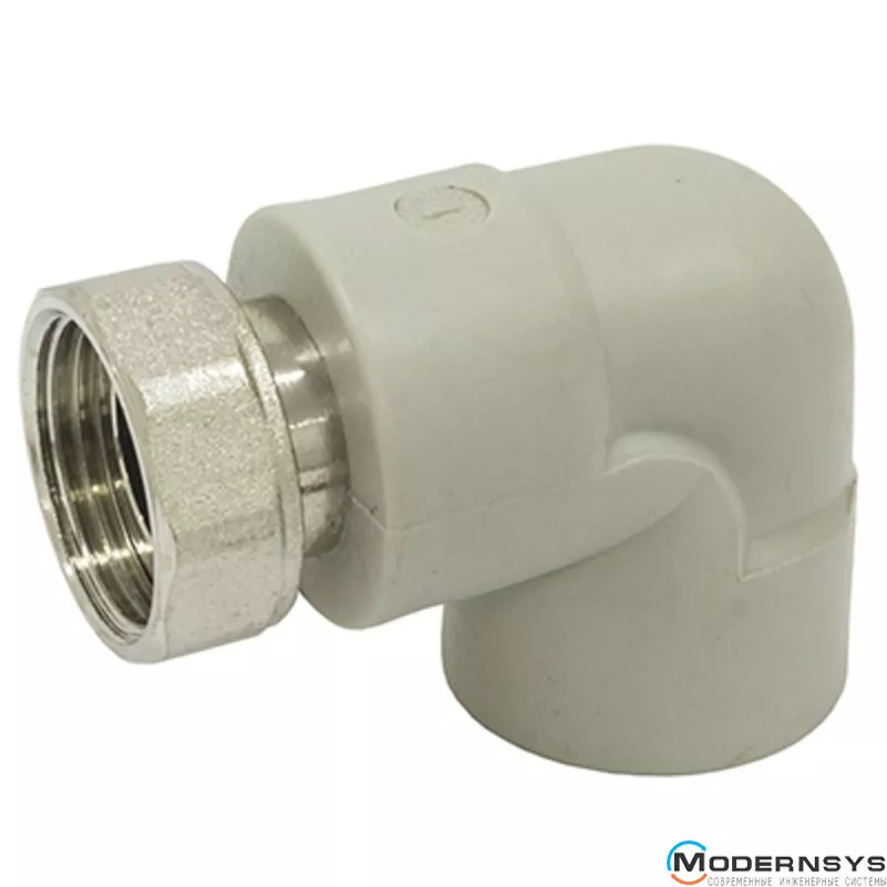 Опис: Коліно ASG (АСГ) 90 * перехід. пласт. з накидною гайкою 20х1/2" ППР (Сірий)