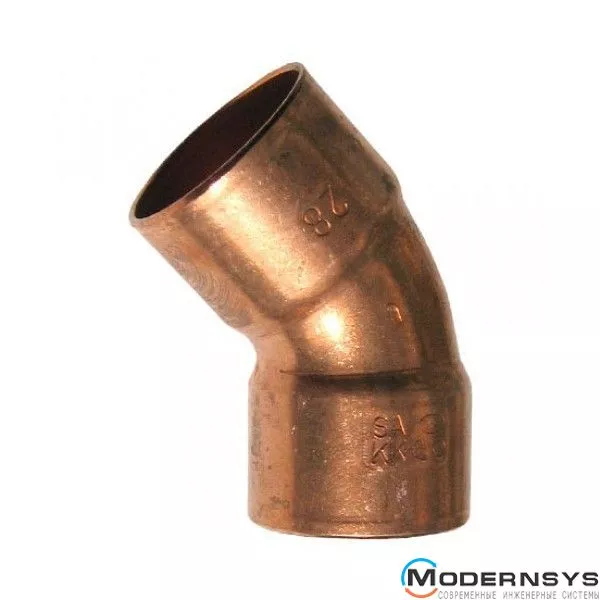 Коліно мідне IBP 45° (1 Муфта) 22, Варіант: 1 муфта, Градус (град.): 45, Виконання: Короткий, Діаметр (мм): 22, фото Коліно мідне IBP 45° (1 Муфта) 22