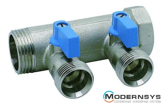 Технічні характеристики: Колектор Bianchi (Биянчи) з кульовими кранами 1" х 2 х 3/4" ЗР (синій) I=45 мм (202C06050D)