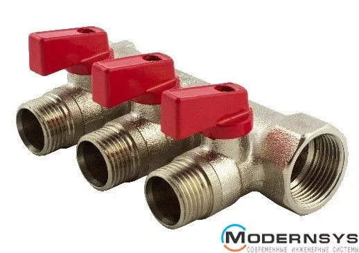 Технічні характеристики: Колектор Bianchi (Биянчи) з кульовими кранами 1" х 3 х 3/4" ЗР (червоний) I=45 мм (203C06050A)