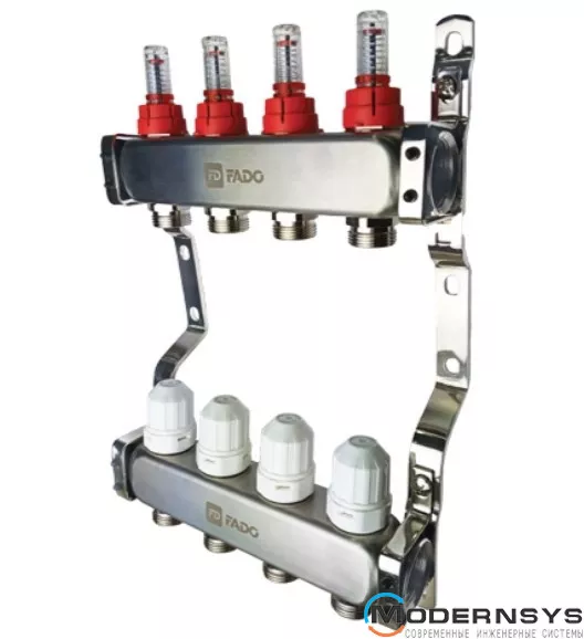 Італійська компанія Fado – відомий виробник арматури для систем опалення та водопостачання. У її арсеналі є безліч технічних рішень реалізованих у її продукції, у тому числі колекторні вузли.