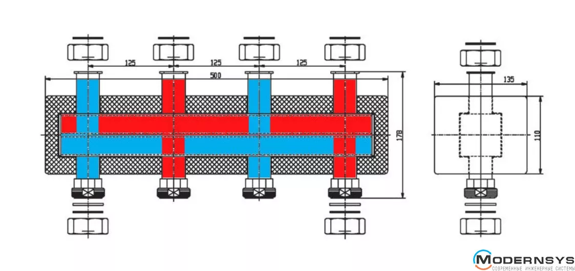 Колектори розподільні FADO призначені для розподілу робочої рідини, що надходить від джерела тепла та розподілу між контурами. Без змішування між падаючою та зворотною лініями. Колектор розподільний FADO поставляється у зібраному вигляді, у теплоізоляційному кожусі у комплекті з кронштейнами.