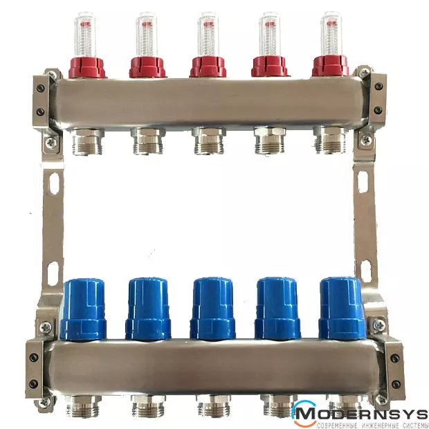 Опис: Колектор теплої підлоги на 5 контурів з витратомірами нерж.сталь Tervix (Тервикс) Pro Line