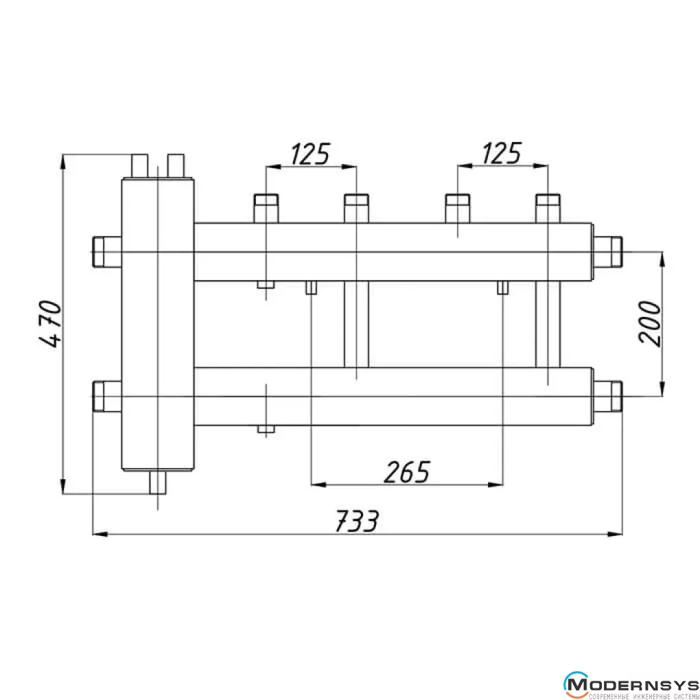 Колектор з гідрострілкою Termojet КГС22В125 (200) 60 kW, без ізоляції, 2+1 контурів, підключення вгору