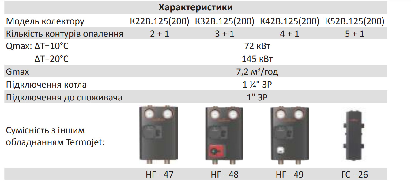Колектор Termojet К22В125(200) 72 kW, у кожусі, 2+1 контурів, виходи вгору