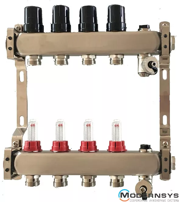 Колектор на 2-12 контурів з витратомірами, краном Маєвського та зливним краном з нержавіючої сталі Tervix Pro Line