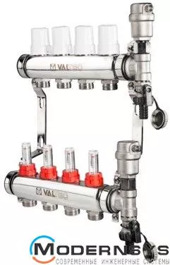 Технічні характеристики: Колекторна група Valtec (Валтек) з витратомірами у зборі 1"х4 вих. Євроконус 3/4" (VTc.589.EMNX.0604)